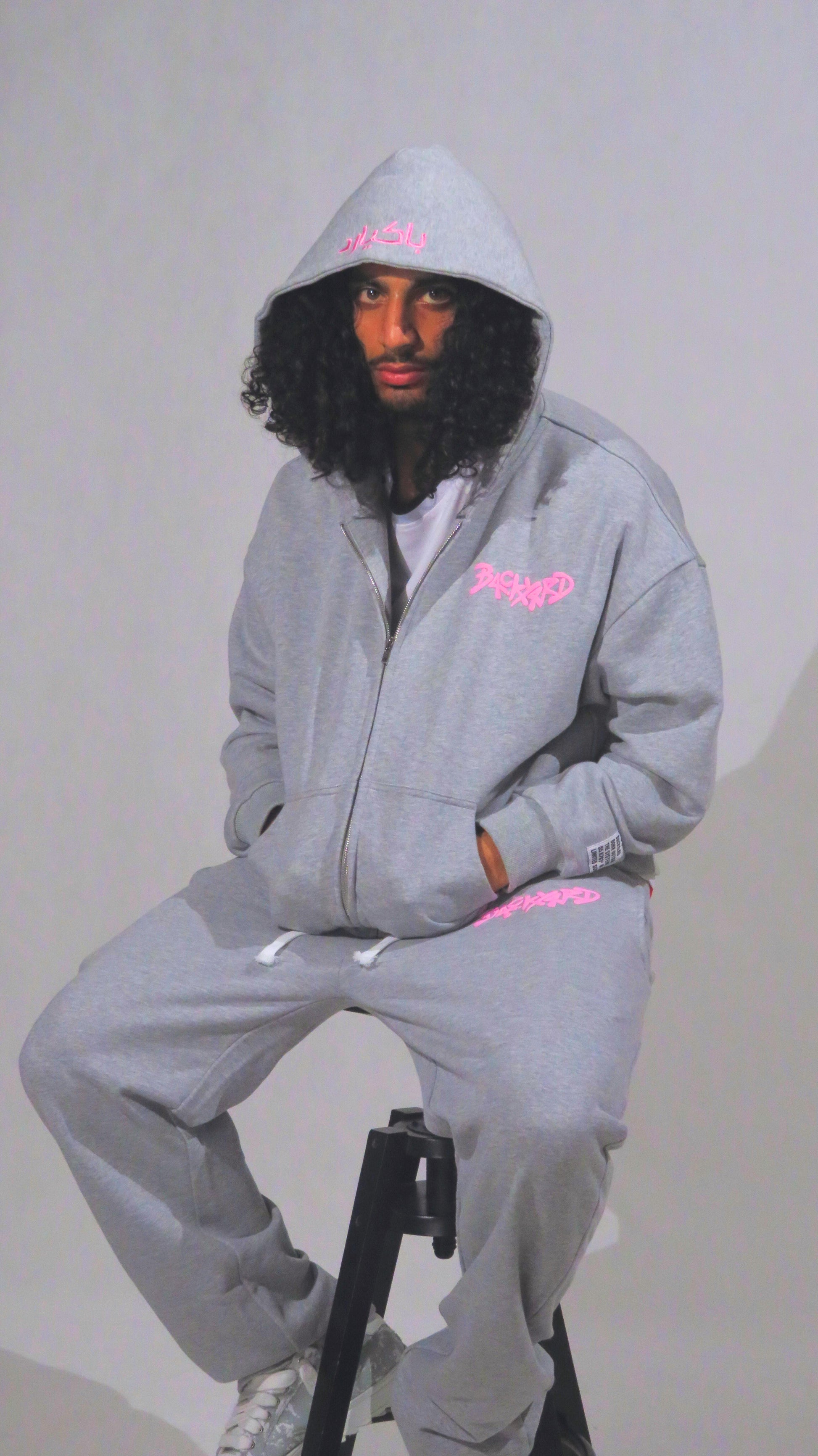 MODELS ARE WEARING SIZE L ZIP UP & PANTS.