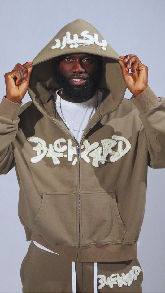 BROWN DISTRESSED ZIP UP HOODIE