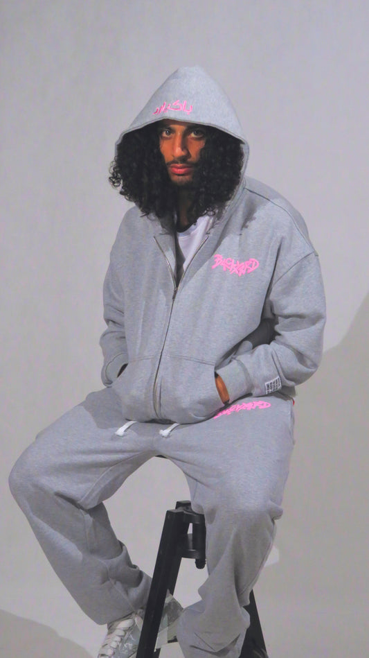 PINK ON GREY ZIP UP HOODIE